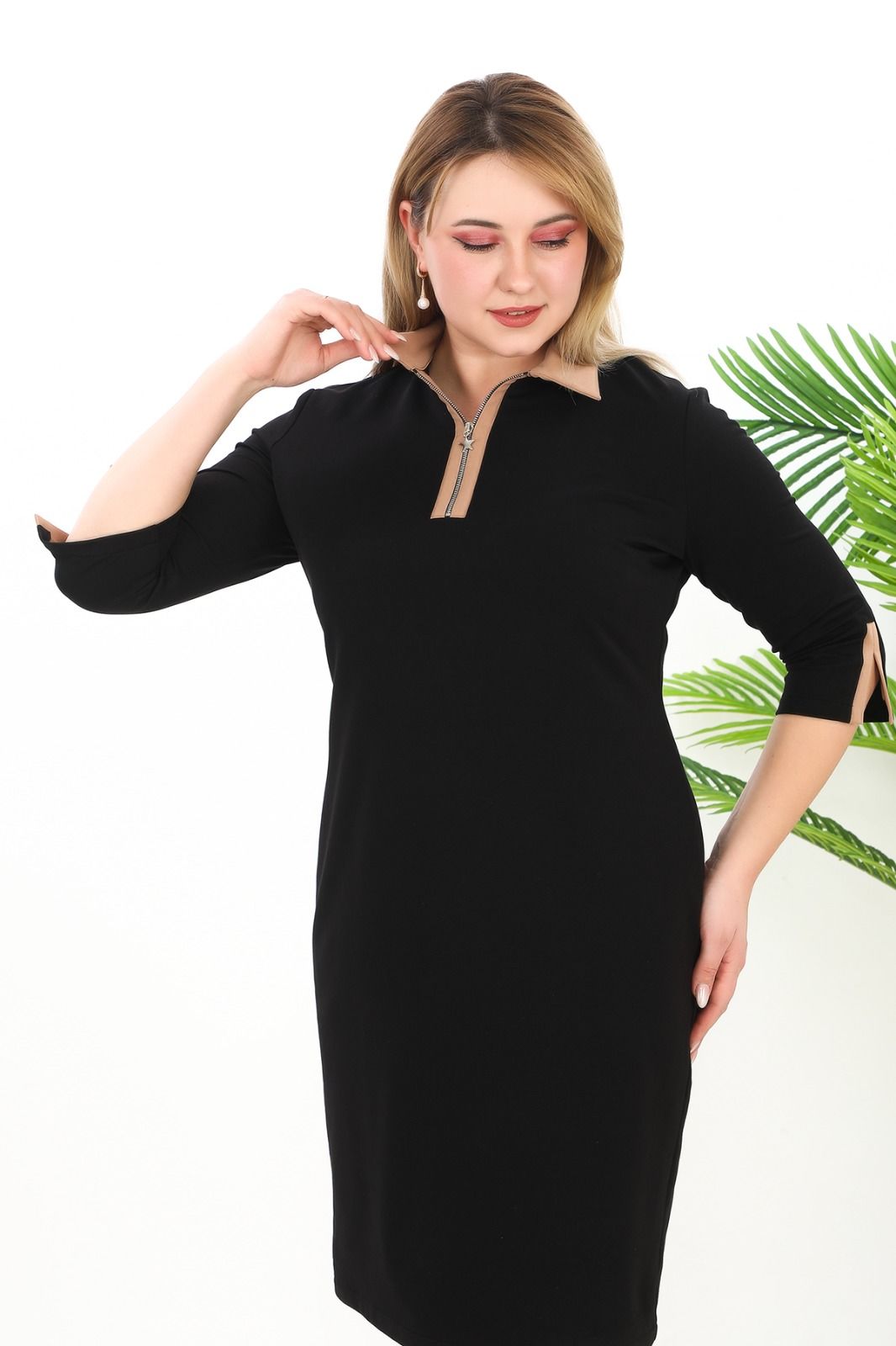 Beyaz Yakalı Fermuarlı Spor Elbise Siyah-Bej - 48 Y3523_41028 Beyaz Yakalı  Fermuarlı Spor Elbise Siyah-Bej - 48