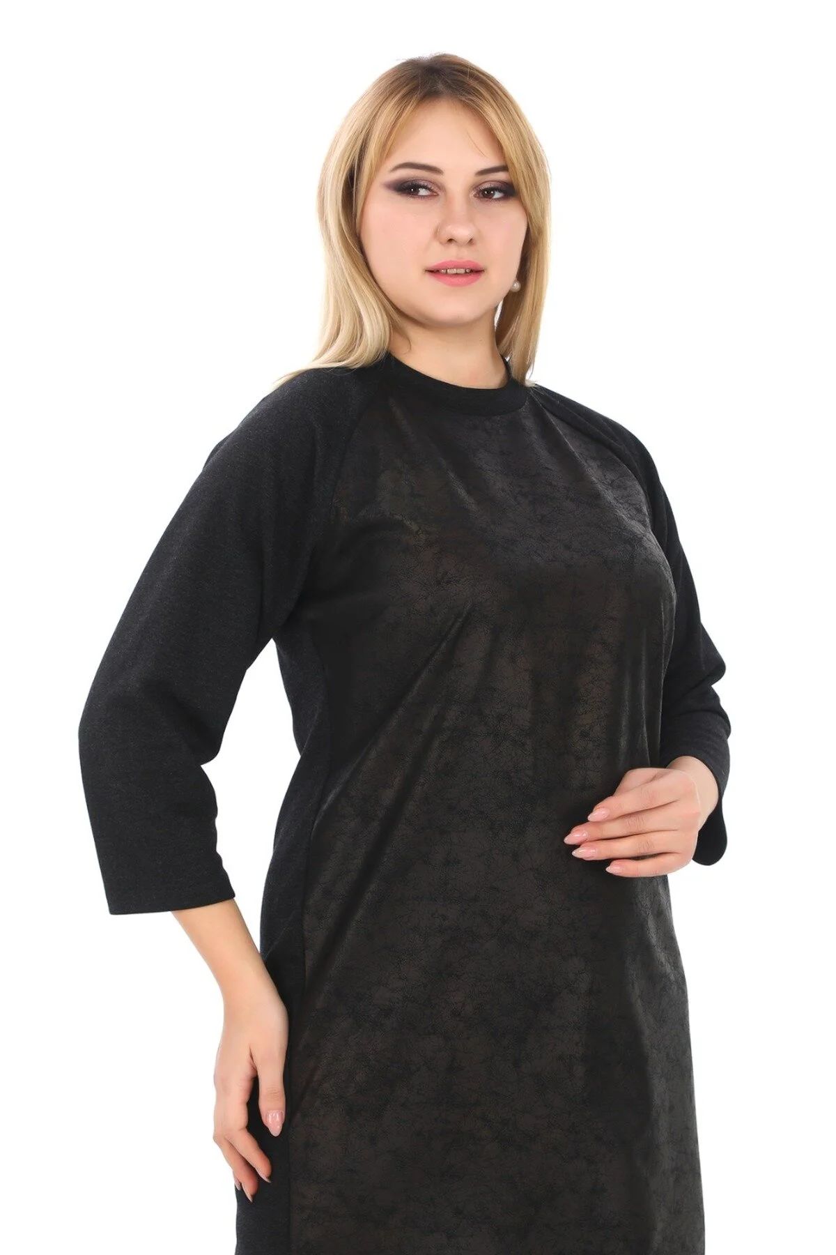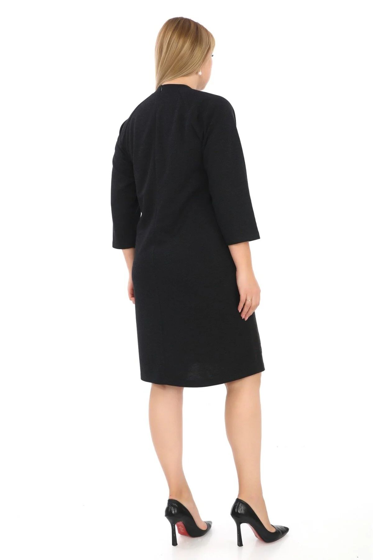 Deri Görünüm Detaylı Bisiklet Yaka Midi Boy Abiye Elbise 6786 Siyah - 48