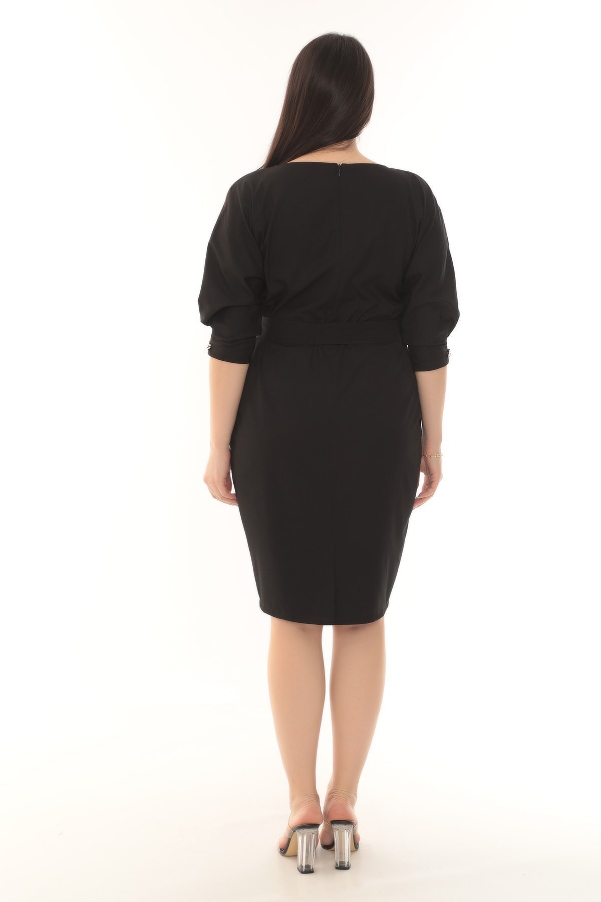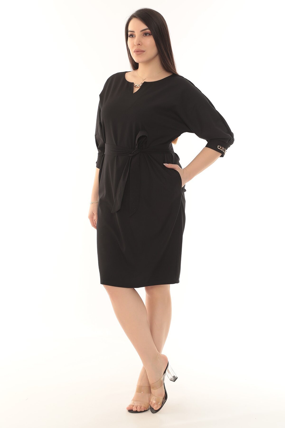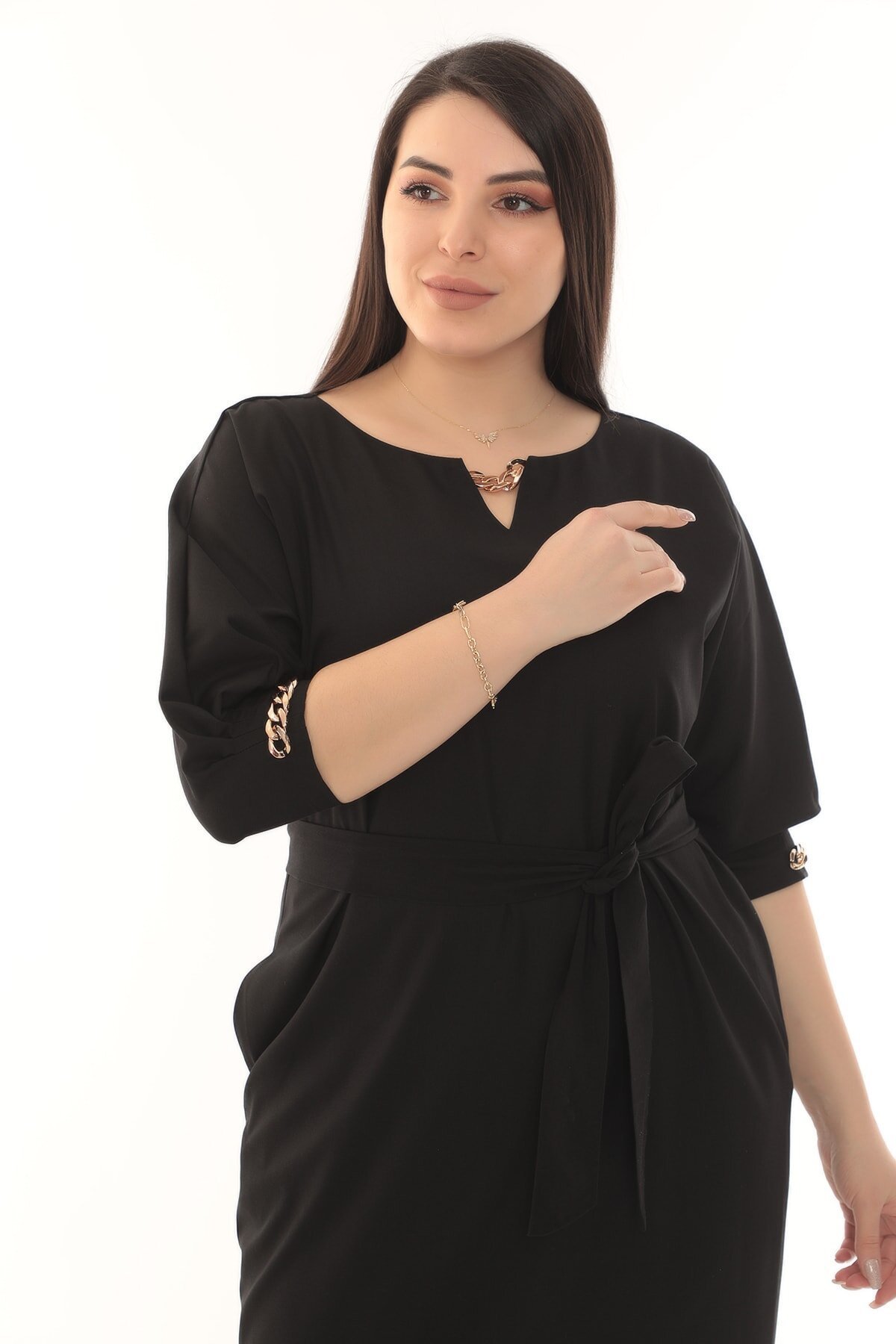 etselements Bisiklet Yaka Zincir Detaylı Kuşaklı Düz Renk Midi Elbise ETS3391 48