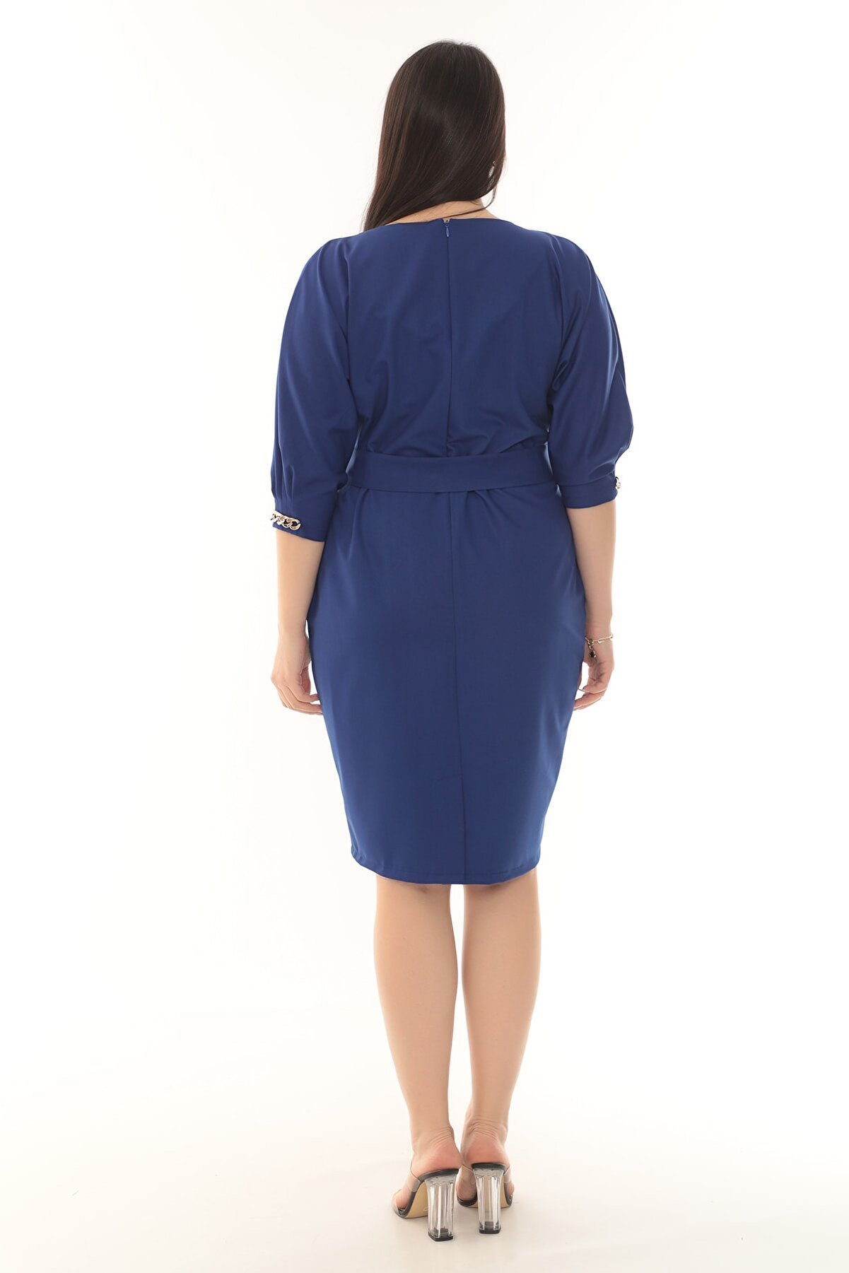 etselements Bisiklet Yaka Zincir Detaylı Kuşaklı Düz Renk Midi Elbise ETS3391 42