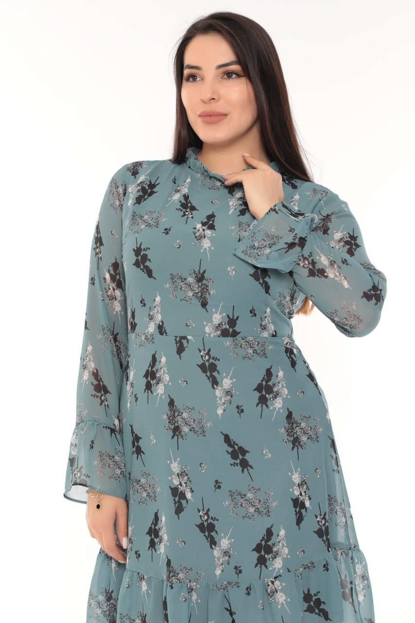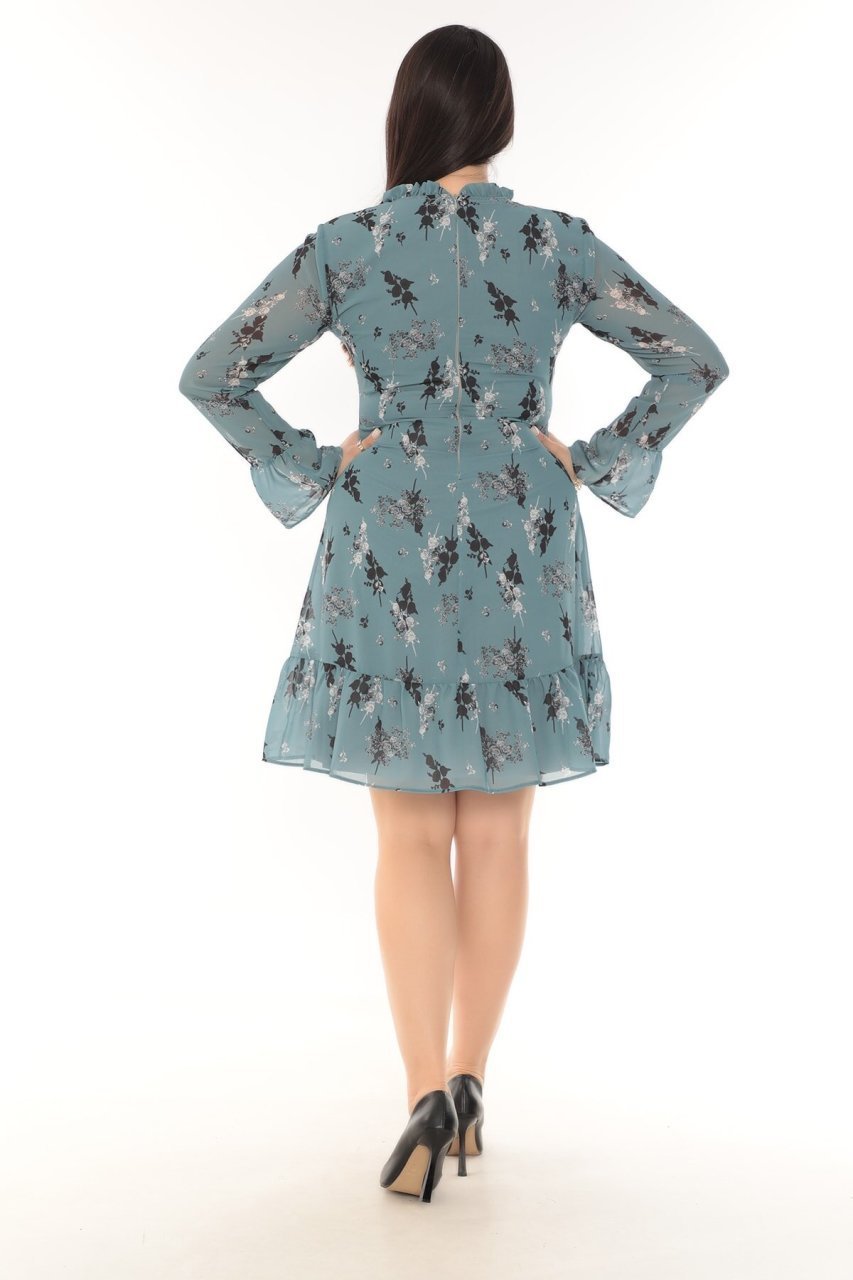 etselements Dik Yaka Etek Ucu Fırfırlı Mint Yeşili Desenli Elbise 100 Cm ETS4788 48