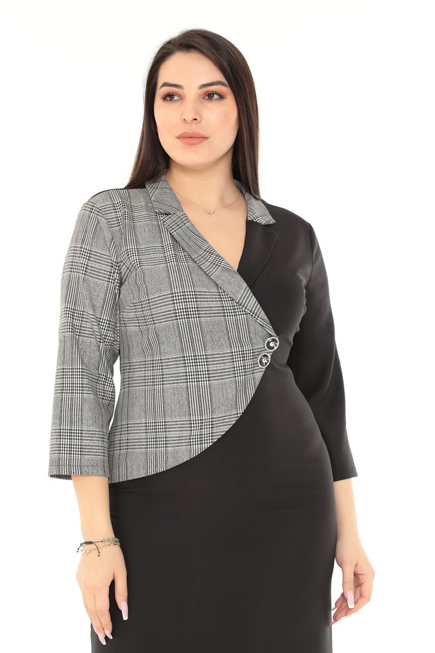 etselements Kadın Siyah Beyaz Ekoseli Kruvaze Ve Çizgili Ofis Elbisesi ETS95545726 48