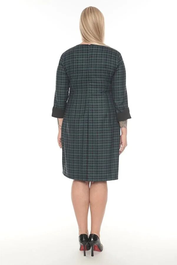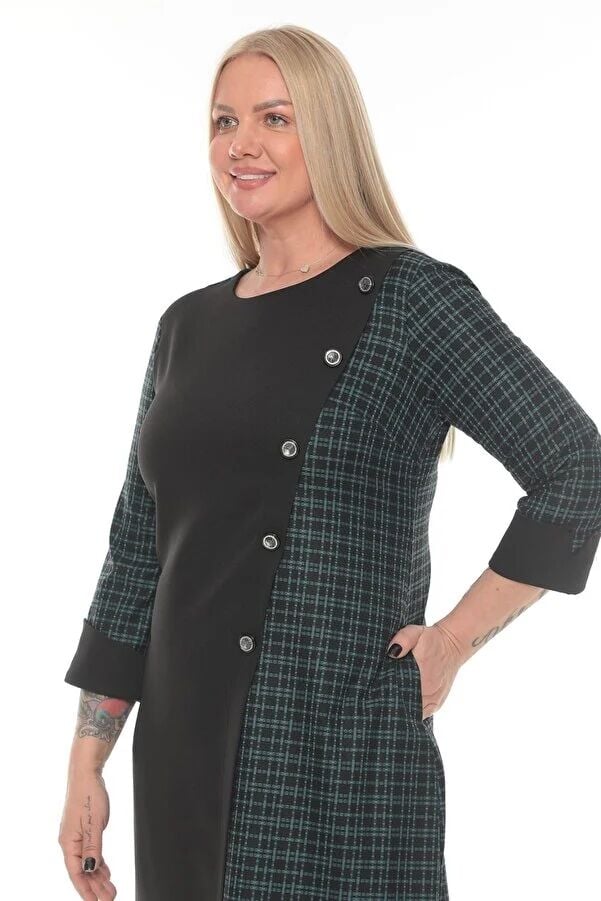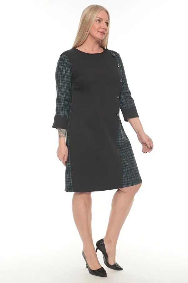 etselements X Modapo Kadın Iki Renkli Düğme Detaylı Büyük Beden Elbise ETS9852 50
