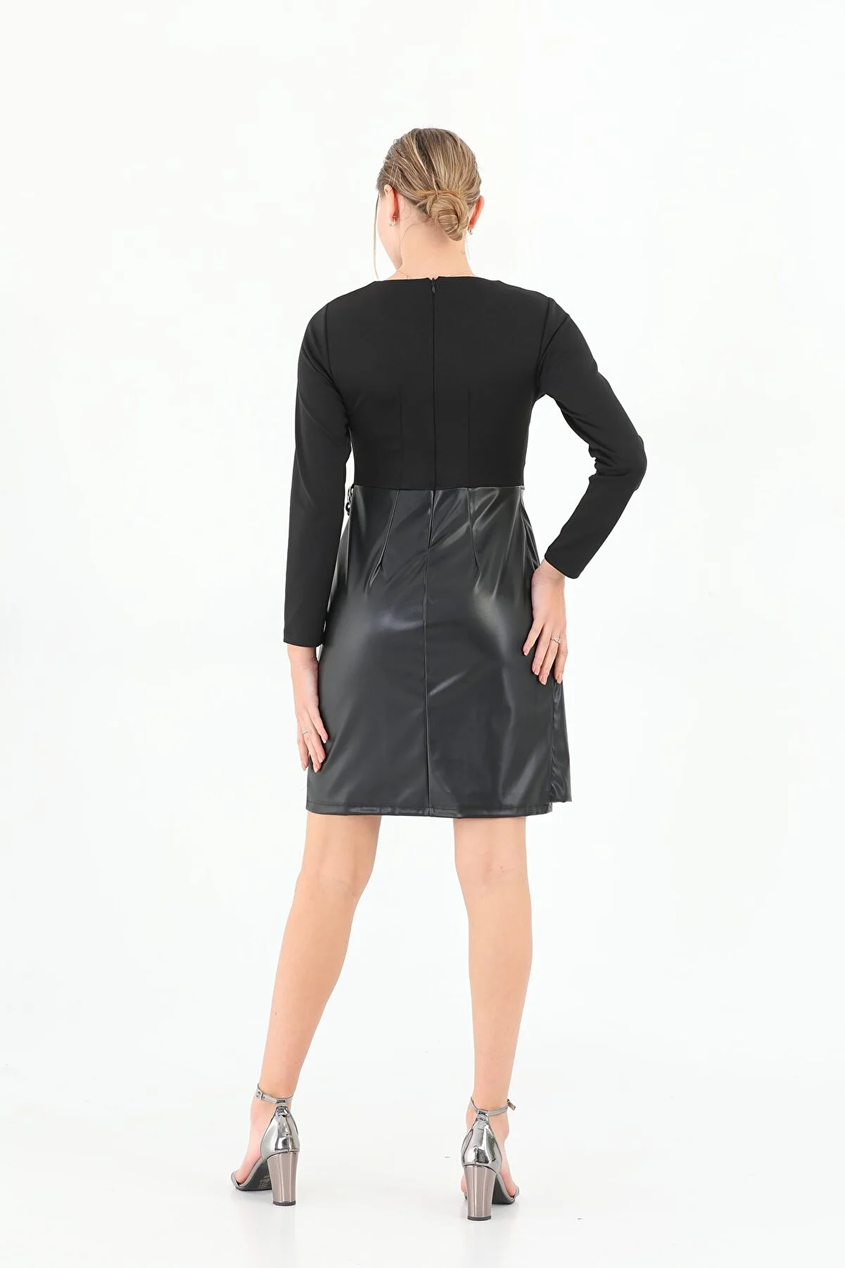 etselements X Modapo Kadın Zincir Detaylı Etek Kısmı Derili Mini Ofis Elbise ETS6688 44