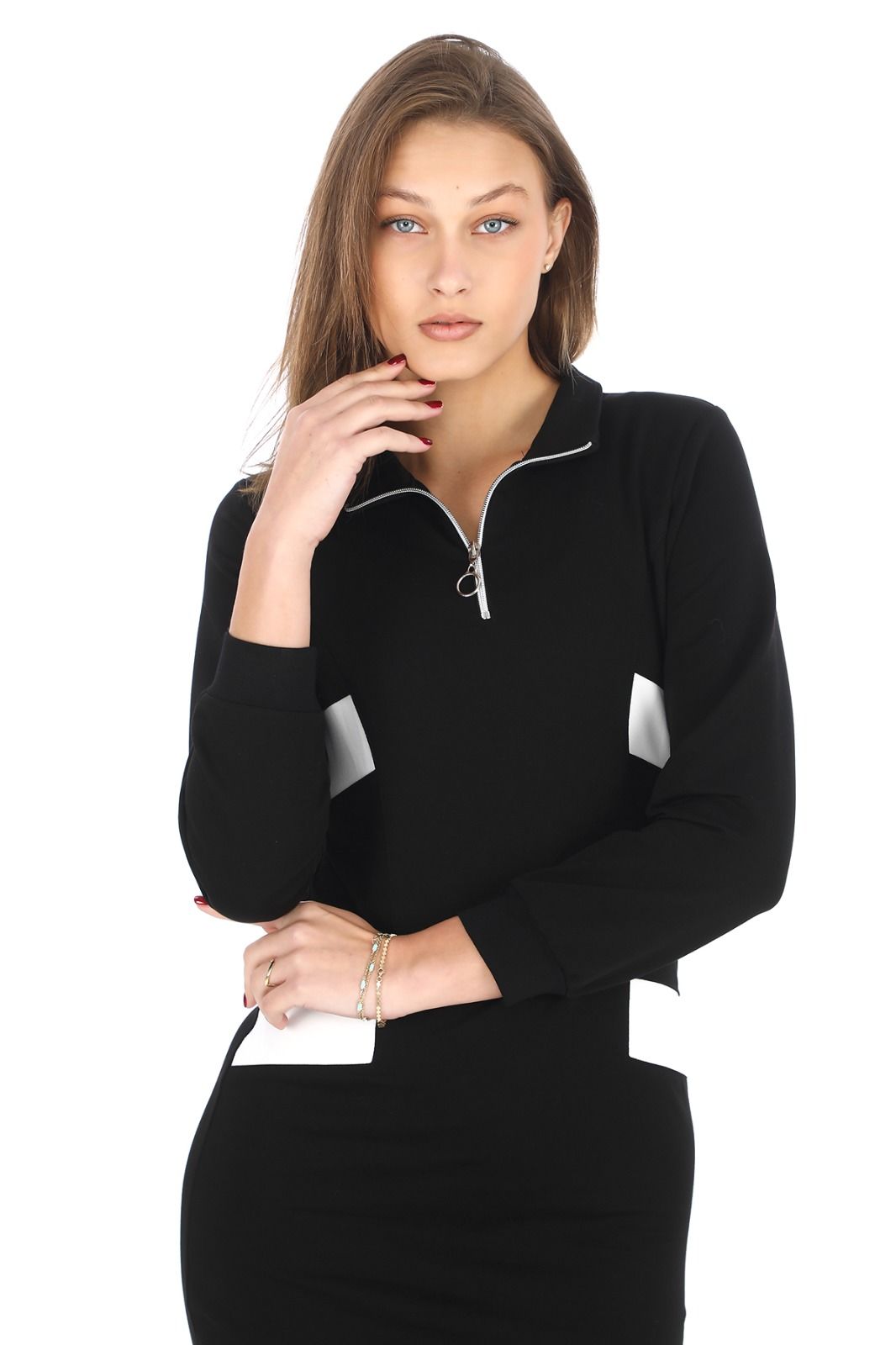 - -Modelin Ölçüleri: Boy: 1.79, Göğüs: 85 Bel: 66, Basen: 98
