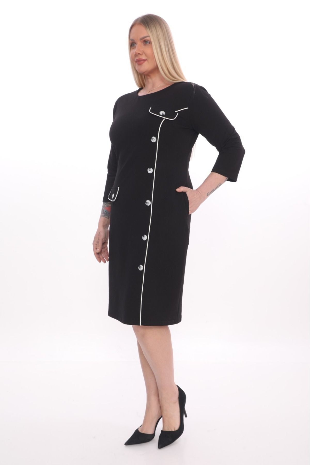 Kadın Düğmeli Biye Detaylı Büyük Beden Elbise 50