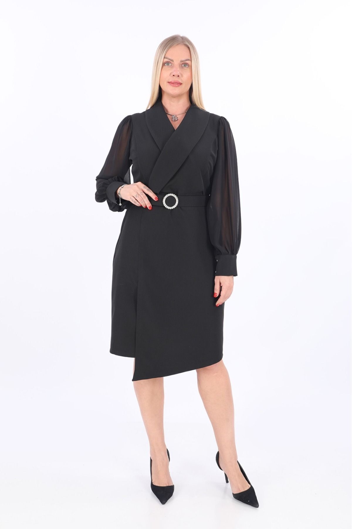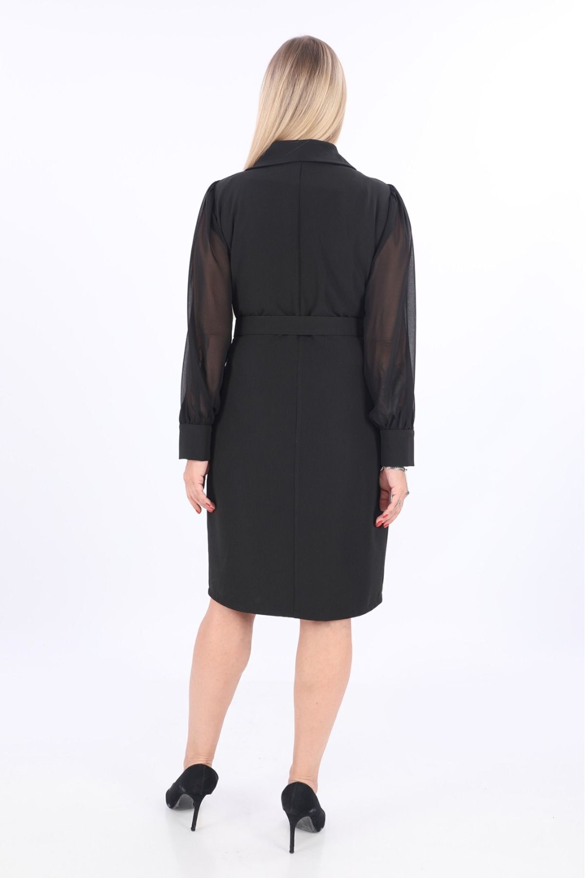 • - Kemer detaylı bel kesimi sayesinde vücut hatlarınıza mükemmel uyum sağlar ve şık bir siluet oluşturur;