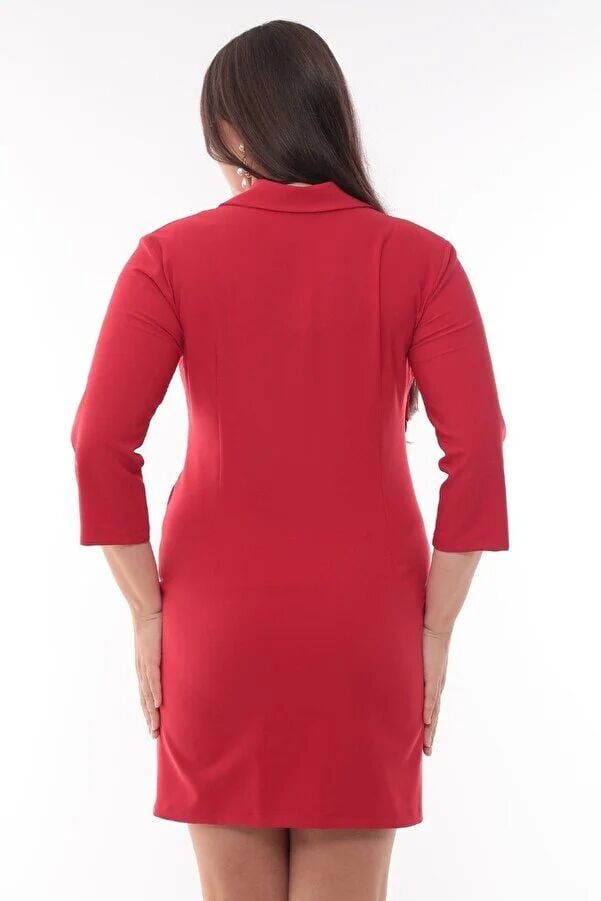 MODAPO Kadın Zincir Detaylı Büyük Beden Ceket Elbise MDP4428 Kırmızı - 48