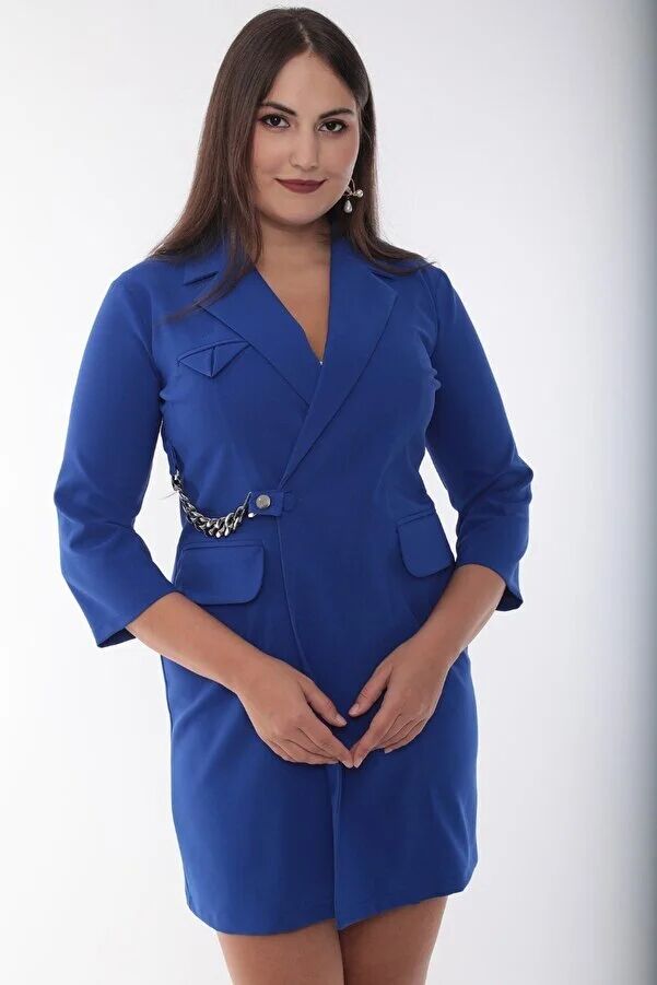 MODAPO Kadın Zincir Detaylı Büyük Beden Ceket Elbise MDP4428 Mavi - 48 DMFT1JRRAM_68542 MODAPO Kadın Zincir Detaylı Büyük Beden Ceket Elbise MDP4428 Mavi - 48