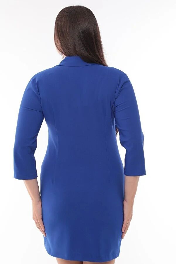 MODAPO Kadın Zincir Detaylı Büyük Beden Ceket Elbise MDP4428 Mavi - 48