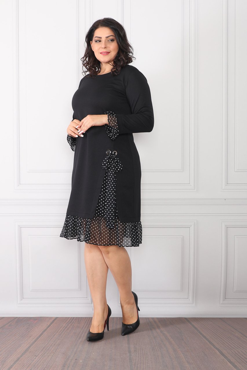 Modelin ölçüleri: Boy: 1.70, göğüs: 108, bel: 86, kalça: 112
