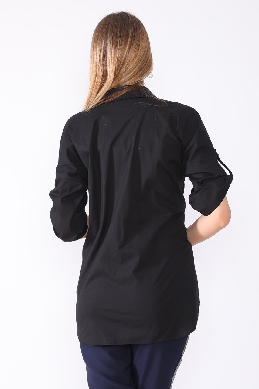 Siyah Göğüsten Kelebek Baskı Detaylı Spor Gömlek ETS5484542 44 - Siyah
